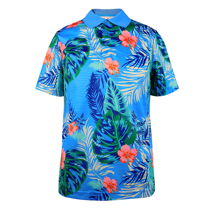 Men's Bahamas Bay Printed Polo Shirt is the perfect addition to any active man's wardrobe. Made of 95% polyester and 5% spandex, this light weight sport shirt is designed with "AIR TECH" performance sport shirt technology, providing quick dry, moisture wicking, and UV protection properties. The new digital print system has upgraded the print quality for a brighter, longer-lasting, and eco-friendly design. This shirt features a solid color knit collar, half placket with three button closure.